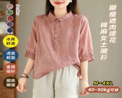 NT$1299正肩剪裁藏肉顯瘦 蝴蝶結點睛超靈動 天絲面料 透氣不悶熱 各類場景都適配 今夏必備減齡神器詳情 - 棉麻提花襯衫NT$950遮肉顯瘦七分袖提花襯衫,輕盈布料與精緻提花工藝完美結合,修飾身形,無論通勤或休閒,皆顯優雅風采詳情