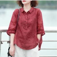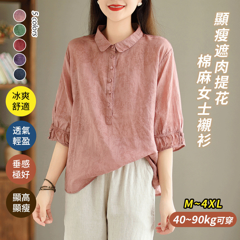 遮肉顯瘦七分袖提花襯衫,輕盈布料與精緻提花工藝完美結合,修飾身形,無論通勤或休閒,皆顯優雅風采