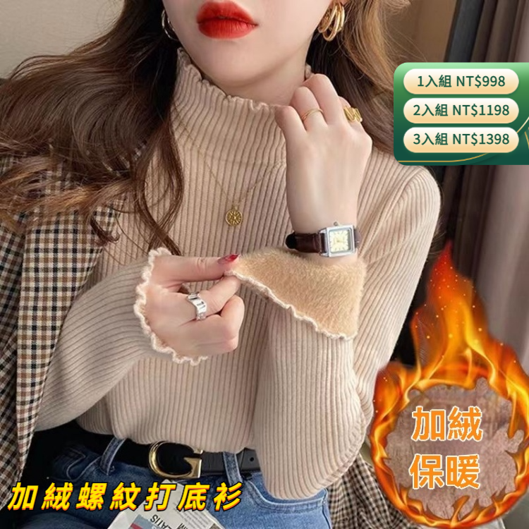[1] 加絨螺紋打底衫【時尚百搭】1入組 NT$998(免運)