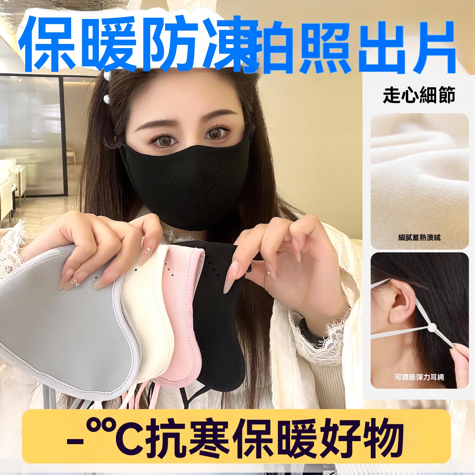 澳絨防風口罩柔軟親膚 鎖溫保暖抵禦寒風 戶外出行舒適不悶氣 高彈設計貼合臉型 反覆洗滌不易變形 秋冬禦寒必備實用單品